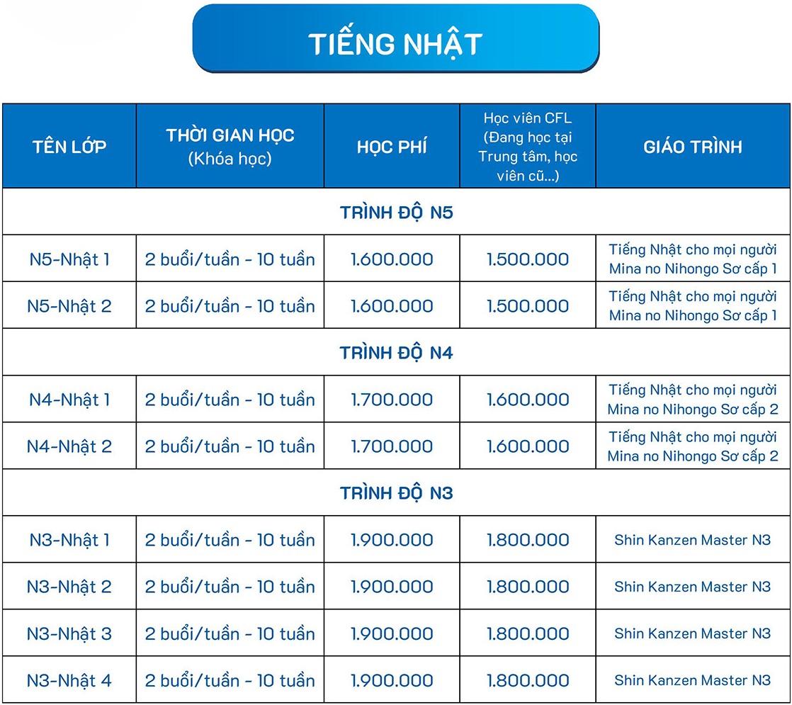 Phòng học các lớp ngoại ngữ khóa 259, khai giảng ngày 04/08/2025