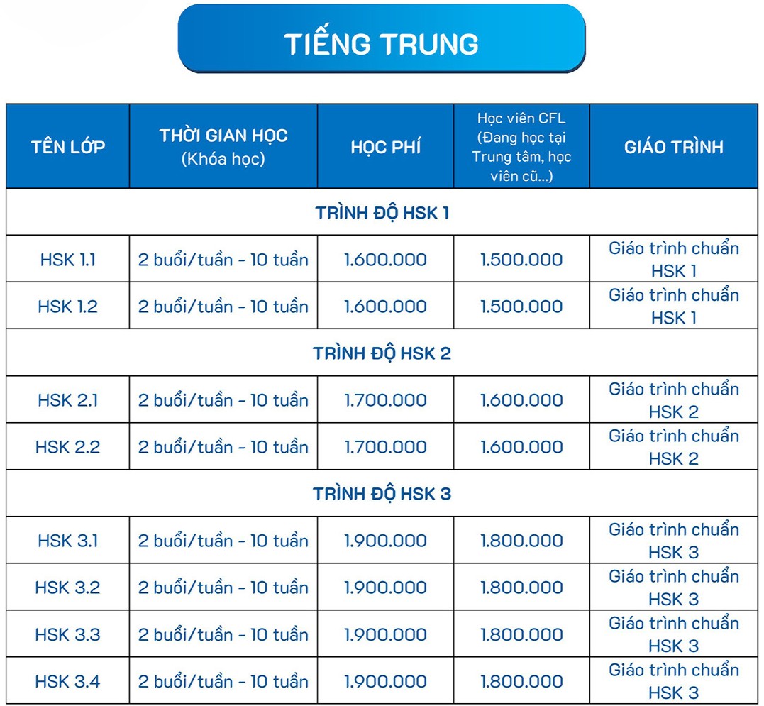 Phòng học các lớp ngoại ngữ khóa 259, khai giảng ngày 04/08/2025