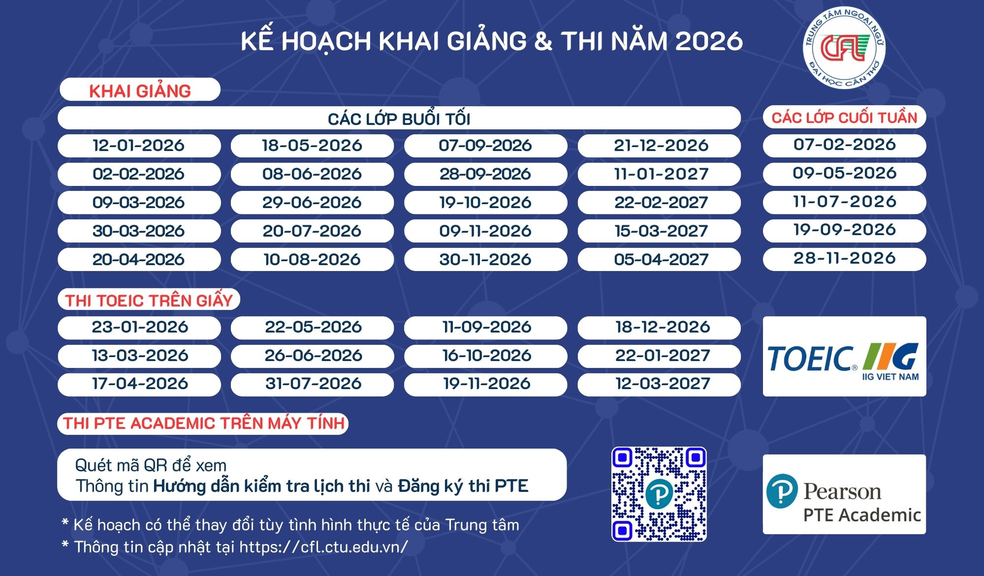 Địa điểm đăng ký: Văn phòng Trung tâm Ngoại ngữ ĐHCT, xem địa chỉ tại đây